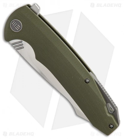 This 617D model is outfitted with a green G-10 handle and a satin finished blade made from D2 steel. The 617 offers the first G-10 folder from We Knife Co., for those who prefer a more tactile grip than their standard titanium handles. It has a stylish harpoon style blade made from ultra-tough D2 tool steel. Ceramic ball bearings and an integral blade flipper provide silky smooth blade deployment with a push of the finger. Titanium pocket clip, backspacer and hardware further solidify the design.