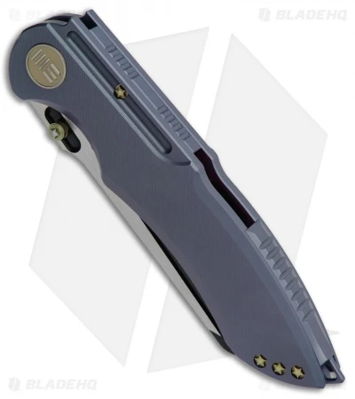 The WE Knife Co. 620C is a resilient frame lock folder made with premium materials and built-to-last construction. Its wharncliffe style blade features deep notched jimping, ambidextrous thumb studs, and a two-tone finish with black grinds and satin flats. Ergonomic contouring, double choil grip, and subtle texturing ensures security in-hand at all times. The 620C is equipped with ceramic ball bearings for quick, responsive blade deployment. This model has a blue titanium handle with bronzed hardware.