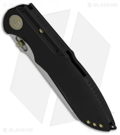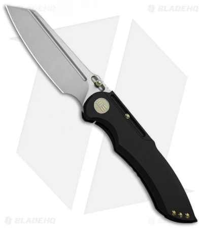 The WE Knife Co. 620L is a resilient frame lock folder made with premium materials and built-to-last construction. Its wharncliffe style blade features deep notched jimping, ambidextrous thumb studs, and a two-tone finish with stonewashed grinds and satin flats. Ergonomic contouring, double choil grip, and subtle texturing ensures security in-hand at all times. The 620L is equipped with ceramic ball bearings for quick, responsive blade deployment. This model has a black titanium handle with bronzed hardware.