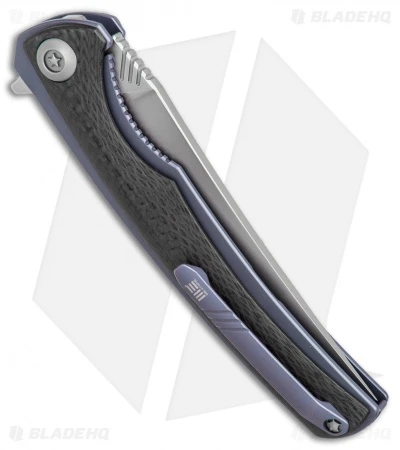 - Carbon fiber/titanium handle construction with reinforced steel insert provides comfortable everyday use and secure blade lockup.