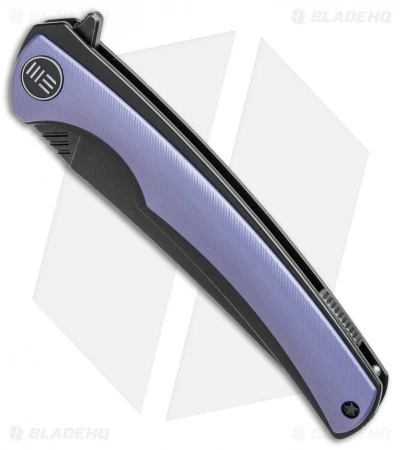 This 704 folding knife from WE Knife Co. is equipped with blue anodized, textured titanium scales over sturdy titanium liners. Its ergonomic handle is paired with a black stonewashed Bohler M390 blade with a slight upswept tip. The addition of a ball bearing pivot offers smooth flipping action for responsive and reliable one-handed blade deployment. This pocket-friendly design comes fitted with a secure tip-up titanium pocket clip.