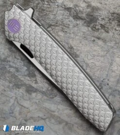 - Handle is outfitted with titanium hardware and a tip-up titanium clip for secure pocket carry.