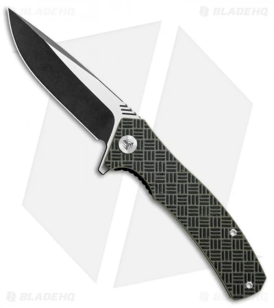 Pick up a slick G-10 flipper from WE Knife Co. with the Blitz model 711. Lightweight and grippy G-10 scales sit over a stainless steel liner lock and sport stylishly placed WE logos. The two-tone flipper blade glides with authority on a ceramic ball bearing pivot. Satin finished flats and black stonewashed grinds add classic appeal to the blade design. A titanium pocket clip and back spacer finish off the undeniable EDC design.