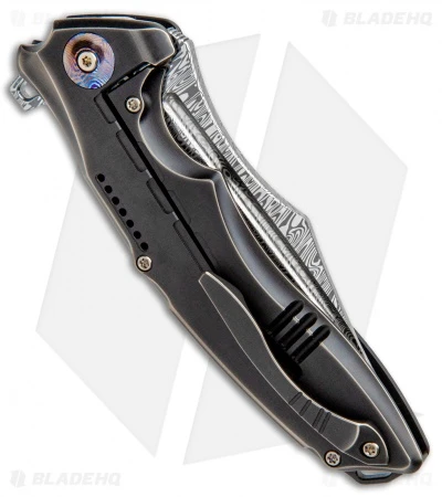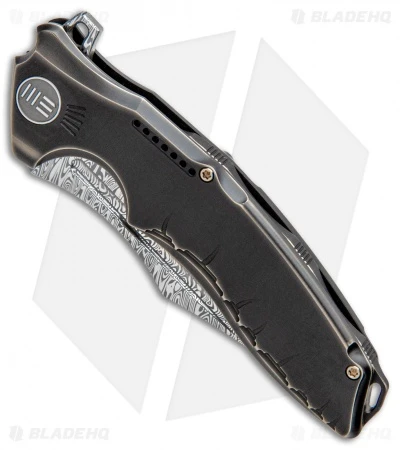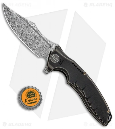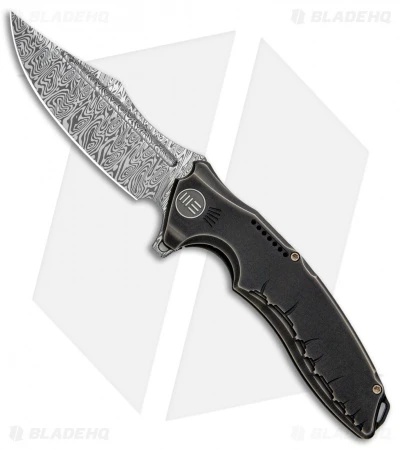 The WE Knife Co. Chimera offers custom style at a production price. This model sports a bronze and black titanium handle and a Damasteel blade. The modified clip point blade flows naturally from the handle further accentuating the distinctive style of the Chimera. An intricately machined titanium backspacer and pocket clip finish off the impressive design.