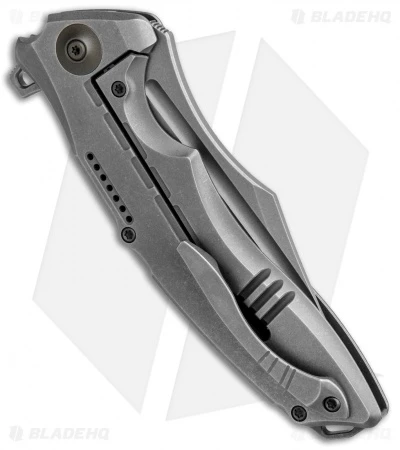 The WE Knife Co. Chimera offers custom style at a production price. This model sports a gray titanium handle and a clip point blade with a blasted and stonewashed finish. The modified clip point blade flows naturally from the handle further accentuating the distinctive style of the Chimera. An intricately machined titanium backspacer and pocket clip finish off the impressive design.