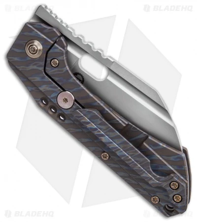 - Milled and sculpted, tiger stripe flamed, titanium handle with bronze hardware.