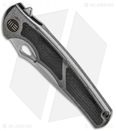 The limited edition WE Knife Co. Tyche is an impressive integral frame lock flipper limited to just 150 numbered knives. This 811B model features a gray handle built from a single piece of polished titanium with carbon fiber inlays. Its blade is made from hand finished satin M390 steel, and sports jimping on the thumb ramp to improve grip security and control. The Tyche is an exceptional EDC folder worthy of any WE Knife collection.