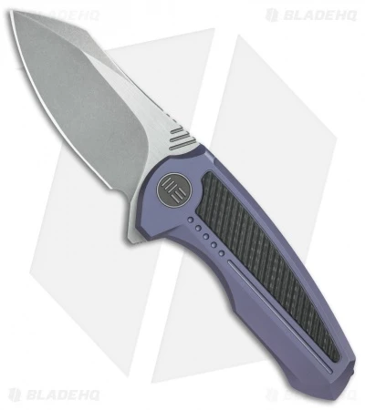This Valiant 717D model features a blue titanium handle with carbon fiber inlays and a modified clip point blade with satin finished flats and stonewashed grinds.