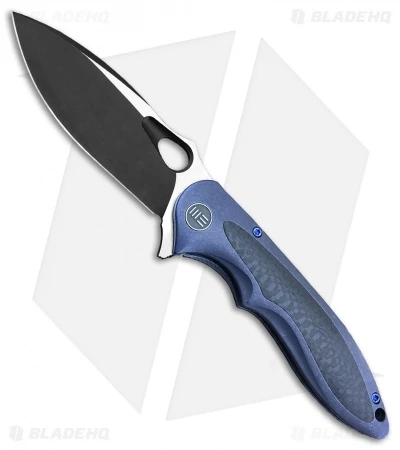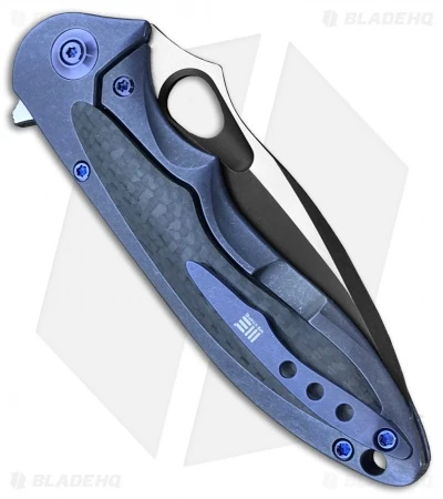 This Zephyr model sports a black finished blade and a blue anodized titanium handle with carbon fiber inlays.